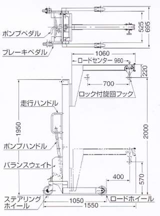 ●工場でのプレスの金型、治具等の脱着、機械等の積揚げ積降しに。 ●早揚り装置付。 ●強力な足踏みブレーキ付。 ●安全性重視の自動積荷チェックバルブ装置内蔵。 |